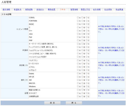 該当するスキルをA,B,Cから選択して画面下のボタンで保存します。