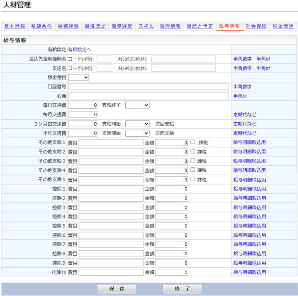 入力されたものは、支給控除額や振込用金融機関データに反映してきますので正しく入力しましょう。