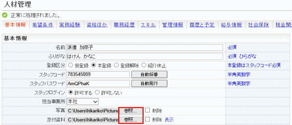 | 登録区分 | 登録区分が「本登録」に設定されていないと、スタッフコードの割り当てが出来ません。 |