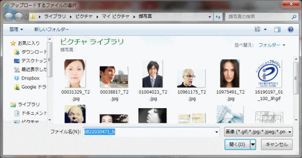 写真はJPG、GIF、PNGなど一般的なイメージ形式ファイルを登録できます。